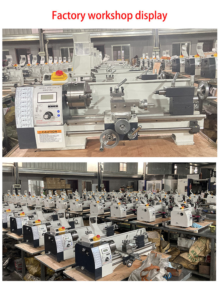 - Stable & Reliable Operation: Swing Over Bed: 210 mm; Swing Over Cross Slide: 400 mm. The small metal lathe features a turret post for quick tool change and a center rest for tight pieces holding, making internal cutting, face cutting, and bevel cutting possible.