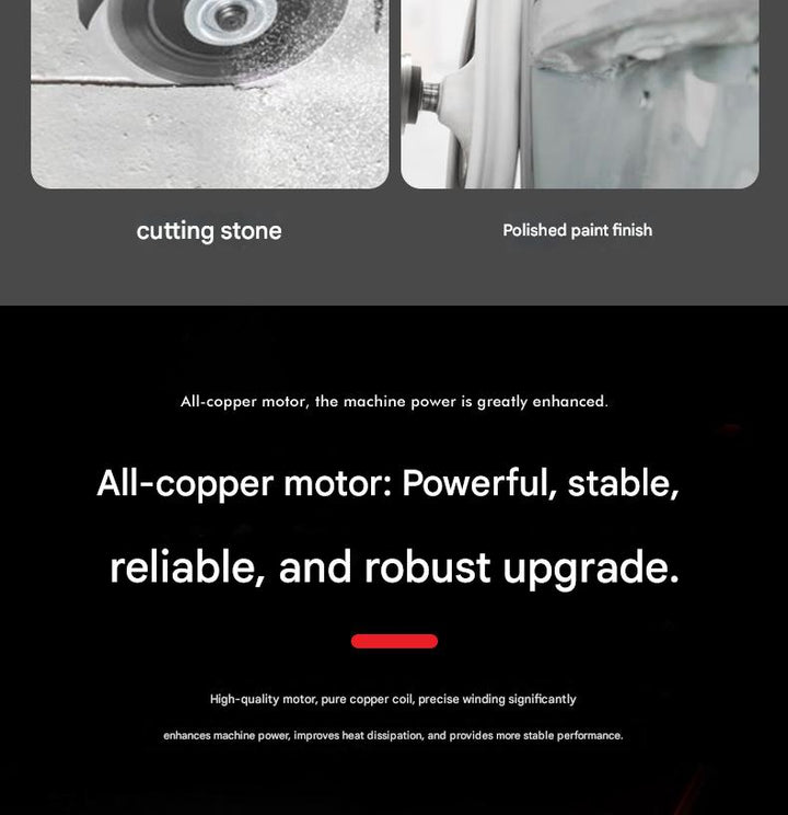 Versatile usage: Cutting woods, metals and stones; polishing vehicles. Rust removal of reinforcing bars.