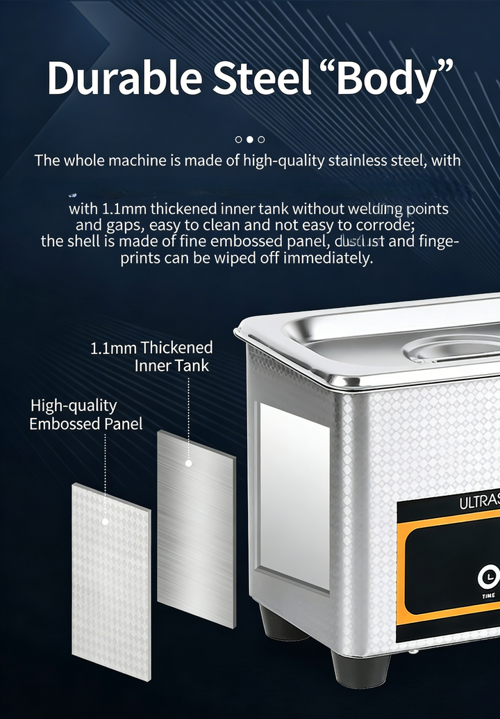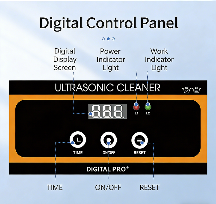 - Digital Control Panel: The digital control panel offers convenient operation, allowing precise control over cleaning time. Multiple modes cater to different item-specific needs, making the cleaning process hassle-free and enhancing your cleaning efficiency.